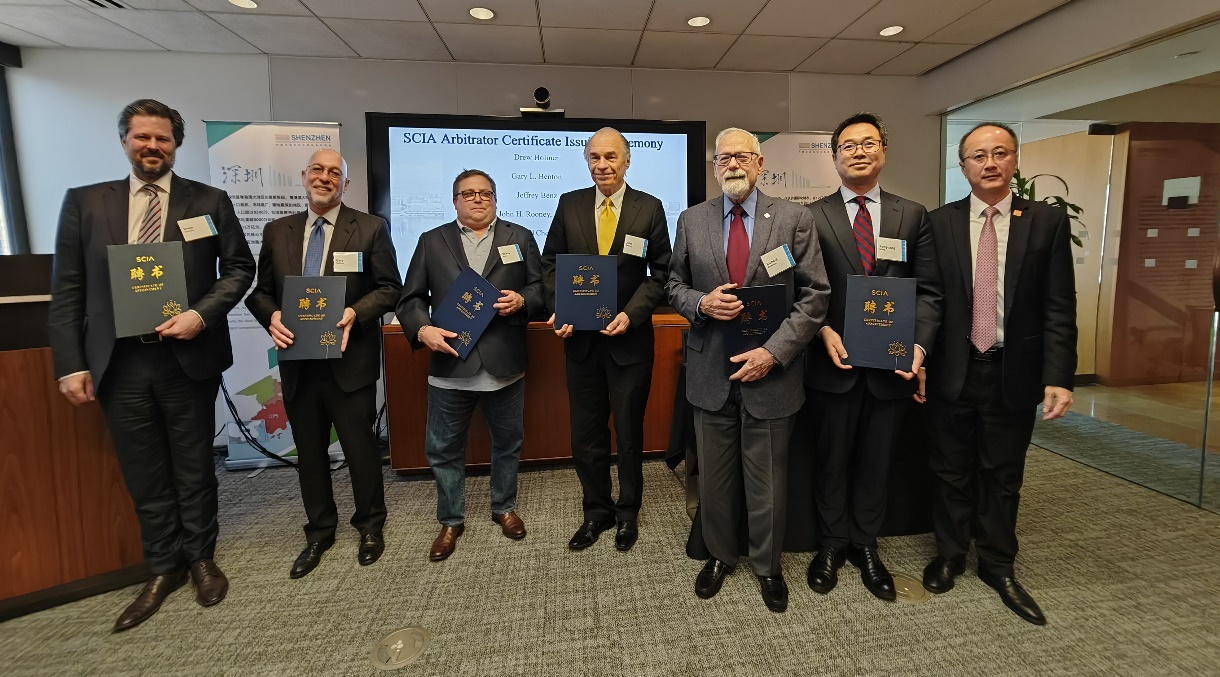 (深國(guó)仲院長(zhǎng)劉曉春向深國(guó)仲北美仲裁員頒發(fā)聘書)