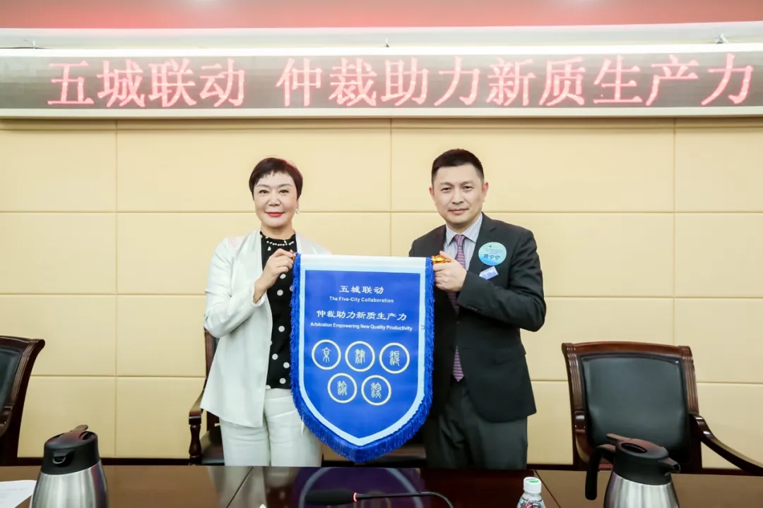 活動最后舉行了仲裁業(yè)務(wù)交流會主辦地交接儀式。北京市律師協(xié)會副會長張麗霞將代表此次“五城聯(lián)動,仲裁助力新質(zhì)生產(chǎn)力”活動的旗幟交付給上海市律師協(xié)會副會長黃寧寧。