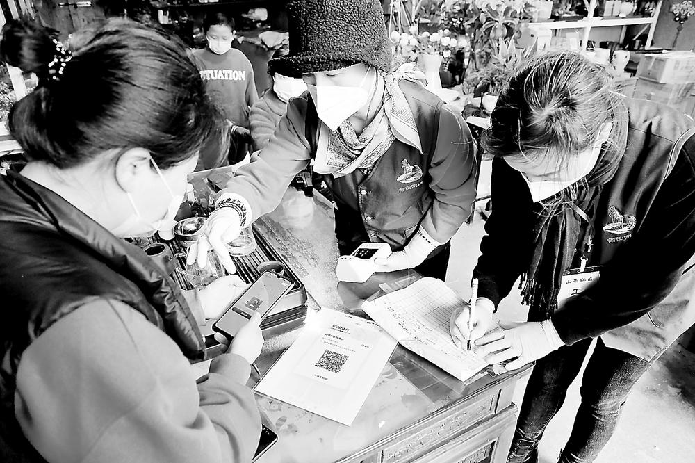 網(wǎng)格員對沿街店面進行信息摸排登記。 陳琛 攝