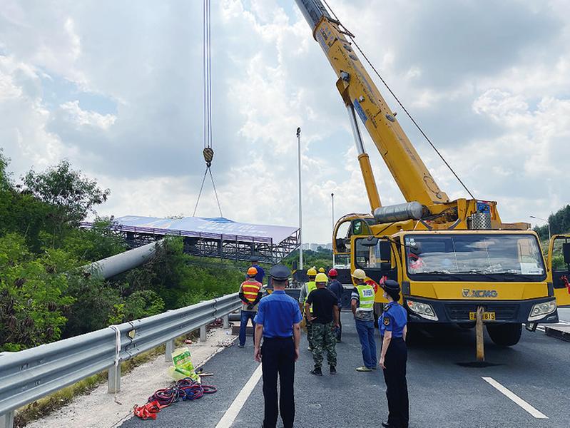 此前,執(zhí)法人員在梳理廣告設施案件時,整理出一批年久失修且不同程度出現(xiàn)破損、銹蝕、松動等問題的廣告設施,這些廣告不僅影響市容市貌,還存在極大的安全隱患。為了徹底消除隱患,城管執(zhí)法人員將8處隱患最大的廣告牌列入8月、9月的拆除行動中。為確保拆除行動順利進行,執(zhí)法人員前期多次到現(xiàn)場進行實地勘查、測量,與拆除公司、廣告設置地所有人確認拆除方法;并對廣告設置業(yè)主、周邊商戶等講解相關(guān)法律法規(guī),逐戶下發(fā)《拆除溫馨提示》,做好宣傳動員等工作。在實施拆除行動中,執(zhí)法人員往往在天沒亮時就到達拆除現(xiàn)場,做好警戒隔離。八九月份的南寧天氣高溫炎熱,執(zhí)法人員頂著烈日連續(xù)6~12小時堅守現(xiàn)場,疏導行人車輛繞行,做好現(xiàn)場群眾的解釋工作,最終順利拆除了這8處大型戶外廣告牌。