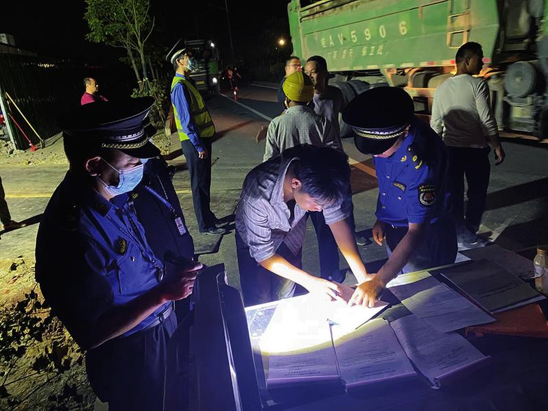 “您好!我們是南寧市城管支隊執(zhí)法人員,檢查中發(fā)現(xiàn)你們工地存在車輛出入口未設置沖洗設施等問題,現(xiàn)要求你們及時改正?!苯?,城管執(zhí)法隊員合理規(guī)劃每日巡查線路,實行“白+黑”出勤模式,全天候全覆蓋巡查,加大對重點區(qū)域、路段和時段的巡查力度,對做得不到位的建筑工地、消納場立即下達整改通知書,限期對存在問題進行整改,通過“常巡查、常復查、常督促”的執(zhí)法方式,將揚塵污染等問題解決在萌芽狀態(tài),持續(xù)擦亮“南寧藍”這張城市名片。
