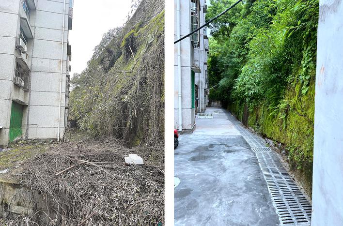 恩施市第一中學(xué)排水管道改造前后對比。(本報恩施圖片庫 牟發(fā)麗 攝)