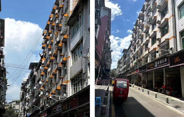 航大商城“蜘蛛網(wǎng)”整治前后對比。(本報恩施圖片庫 王玲 攝)