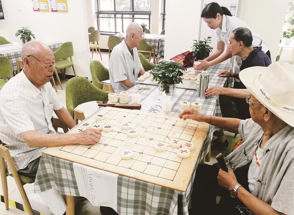 在“物業(yè)+養(yǎng)老”服務(wù)中心,老人們下棋娛樂。 本報(bào)記者 李家平 攝