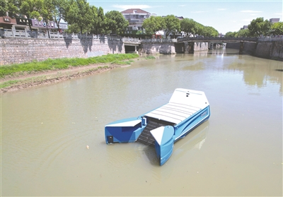 近期,臨浦鎮(zhèn)峙山河的河道內(nèi)也迎來了一位不同尋常的“保潔員”——智能無人保潔船。無人船往返于河面,通過船頭“雙臂”不斷將河面垃圾裝進“肚子”里,很快河道垃圾便被清理干凈。