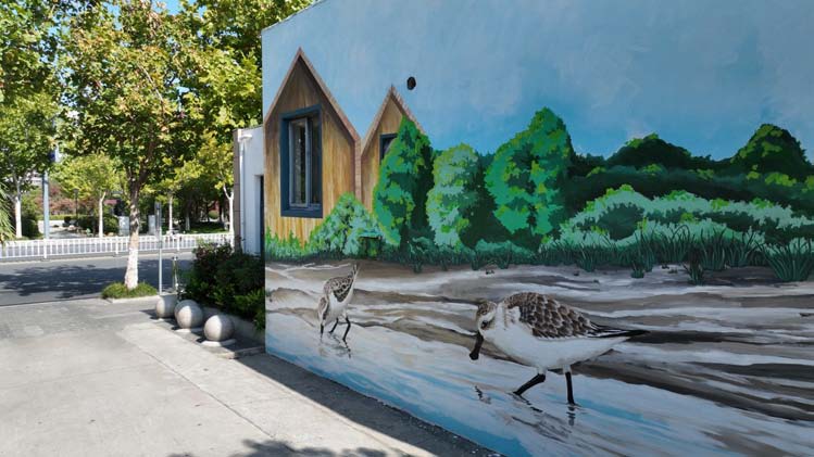 這邊公廁外立面粉刷一新,那邊墻面彩繪美輪美奐。在廣場(chǎng)路公廁西面墻上,一幅栩栩如生的勺嘴鷸墻面畫吸引不少市民駐足觀看。該墻面畫長(zhǎng)9米、寬4.5米,含濕地、勺嘴鷸、森林、小木屋等東臺(tái)元素,描繪出一對(duì)“小勺子”在條子泥濕地自由覓食的生動(dòng)景象,展現(xiàn)了人與自然和諧共生的美好圖景。“在實(shí)際作畫過程中發(fā)現(xiàn)墻面有個(gè)窗戶,通過構(gòu)思把窗戶融合到畫面中的小木屋里去了?!崩L畫老師朱進(jìn)華告訴記者,物畫融合也是這幅畫的亮點(diǎn)之一。