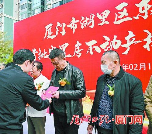本月中旬,湖里區(qū)啟動(dòng)湖邊御景安置房產(chǎn)權(quán)證發(fā)放儀式,增強(qiáng)居民獲得感。記者 林銘鴻