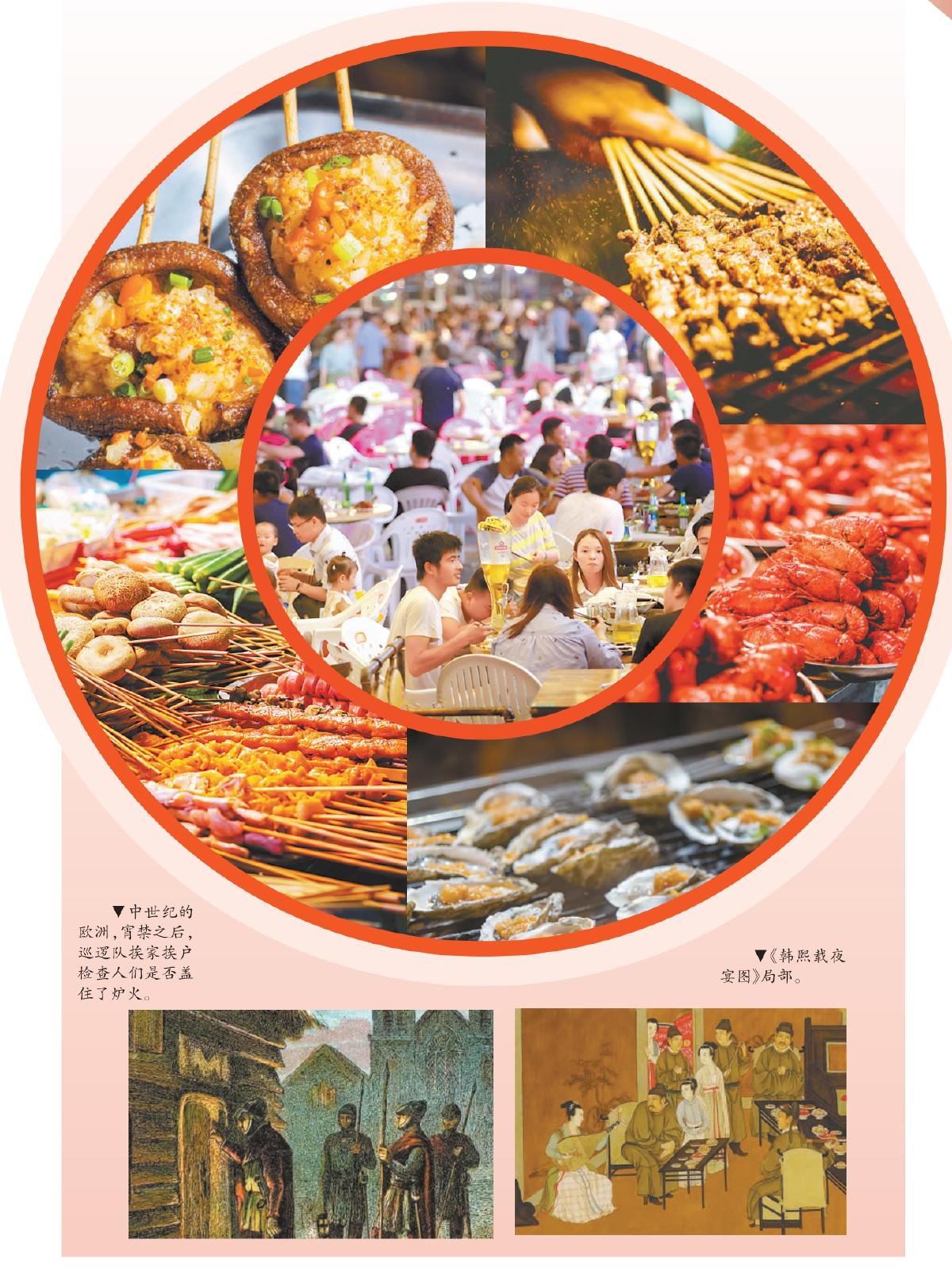 夏季的城市之夜格外熱鬧,夜市小吃攤的燈火次第點(diǎn)亮,一場(chǎng)屬于夜宵的狂歡也就此開始?!吧钜故程谩弊钅軗嵛棵β盗艘惶斓默F(xiàn)代人,然而回到幾百年前,夜晚的街道是禁止踏入的,甚至閉門在家也要熄滅爐火、禁止進(jìn)食。從“宵禁”到“夜宵”的那些夜晚,記錄了人們戰(zhàn)勝黑暗恐懼、點(diǎn)亮城市生活的艱辛歷程。