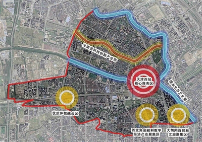 根據(jù)《總體方案》,京津冀同城商務(wù)區(qū)正在打造“一核兩帶三組團(tuán)”的空間布局。其中,“一核”即天津西站核心商務(wù)區(qū),“兩帶”是光榮道科技創(chuàng)新產(chǎn)業(yè)帶和濱水生態(tài)文化帶,“三組團(tuán)”為西北角金融和數(shù)字經(jīng)濟(jì)產(chǎn)業(yè)聚集區(qū)、大胡同商貿(mào)和文旅聚集區(qū)、優(yōu)質(zhì)體教融合區(qū)。未來(lái)該商務(wù)區(qū)將建成高鐵樞紐綜合開(kāi)發(fā)標(biāo)桿區(qū)、同城生產(chǎn)生活引領(lǐng)區(qū)、都市型產(chǎn)業(yè)升級(jí)先行區(qū)、津衛(wèi)人文生態(tài)魅力區(qū)。