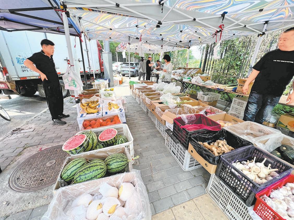 位于通州區(qū)宋莊鎮(zhèn)的香溪郡、荷香里兩個(gè)社區(qū)屬于新建社區(qū),居住人口約6000人。但過去,周邊缺乏商超等配套服務(wù)設(shè)施,僅有四家小型超市,售賣的蔬菜水果種類和數(shù)量有限。此前,小區(qū)附近的路邊,偶有附近村民聚集,占道售賣蔬菜水果等農(nóng)產(chǎn)品。樸桂善說,雖然買菜方便了,但是游商流動(dòng)性大,售賣的蔬果品質(zhì)良莠不齊。