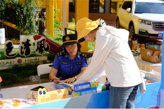 在游戲區(qū)旁,公職律師“駐攤問診”服務(wù)同步進(jìn)行。公職律師團(tuán)隊(duì)化身“法律顧問”,為市民提供零距離、一對(duì)一的法律咨詢,從物業(yè)糾紛調(diào)解到合同條款解析,以專業(yè)視角抽絲剝繭,為群眾排憂解難?!皡⒓訚h堡節(jié)還能解決我的法律困惑,省時(shí)又省心。”前來咨詢的商戶李先生感慨。