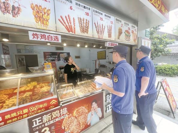 目前,呂巷鎮(zhèn)共設(shè)自產(chǎn)自銷農(nóng)產(chǎn)品疏導(dǎo)點3處,今年準(zhǔn)備對水果公園疏導(dǎo)點進(jìn)行優(yōu)化,將分散式設(shè)攤改為集中設(shè)攤。比如璜溪佳苑集中居住項目開工后,因工地食堂不能滿足建筑工人需求而出現(xiàn)了流動食品攤販。對此,中隊現(xiàn)場開展調(diào)研,引導(dǎo)攤販租賃工地對面閑置商鋪,上門指導(dǎo)辦理營業(yè)執(zhí)照,最終4家餐飲店組成了“工地餐飲服務(wù)區(qū)”。同時,大家還制定了《外擺經(jīng)營公約》,允許商戶在午晚餐高峰時段劃定區(qū)域增設(shè)桌椅,既解決工人“吃飯難”,又保持環(huán)境整潔。