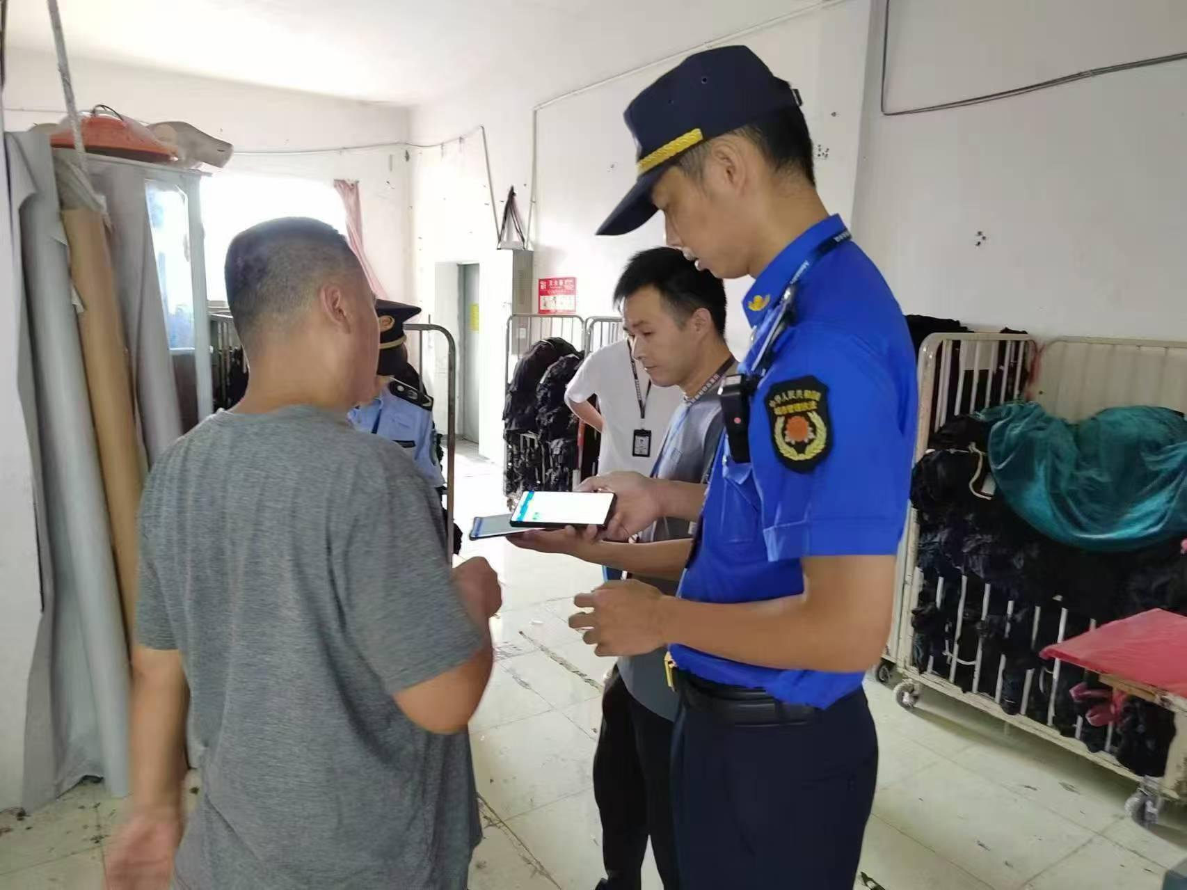 馮建勇(右一)聯(lián)合其他部門(mén)執(zhí)法人員開(kāi)展涉企檢查