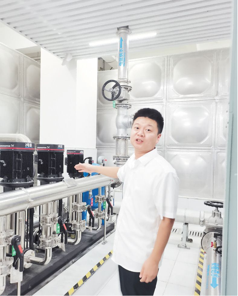 長(zhǎng)沙水業(yè)集團(tuán)供水公司工程建設(shè)部工作人員石璧生說(shuō),鉑宮小區(qū)水表入戶改造時(shí)建設(shè)的供水房設(shè)備更智能。記者 劉軍 攝