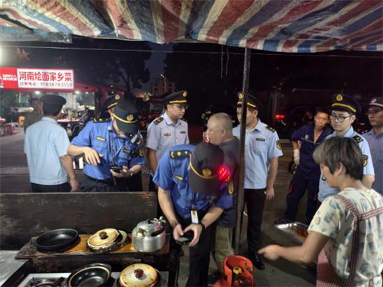 此次專項(xiàng)檢查重點(diǎn)覆蓋轄區(qū)內(nèi)的餐飲店鋪、夜宵城及周邊小區(qū),執(zhí)法人員圍繞商戶燃?xì)饧霸罹叩囊?guī)范使用、餐飲環(huán)境衛(wèi)生、食品安全、消防安全以及居民文明養(yǎng)犬等方面,進(jìn)行了全面細(xì)致的排查。在澥浦夜宵城檢查時(shí),發(fā)現(xiàn)部分商戶存在燃?xì)馄窟^期的現(xiàn)象。對(duì)此,執(zhí)法人員一方面指導(dǎo)商戶整改違規(guī)用氣行為,同步開展燃?xì)獍踩褂眯麄鳎涣硪环矫娼Y(jié)合商戶經(jīng)營(yíng)需求,第一時(shí)間聯(lián)系美氣多公司到場(chǎng),協(xié)助商戶現(xiàn)場(chǎng)辦理開戶,并指導(dǎo)其通過官方電話、企業(yè)微信公眾號(hào)等正規(guī)渠道訂氣,從源頭上杜絕“黑氣”流通。這種集安全宣教、整改指導(dǎo)與現(xiàn)場(chǎng)服務(wù)于一體的方式,讓商戶切實(shí)感受到執(zhí)法的溫度,也提升了對(duì)服務(wù)式執(zhí)法的認(rèn)可。同時(shí),執(zhí)法人員對(duì)小區(qū)周邊進(jìn)行犬類集中整治,因夏季遛狗居民較多,執(zhí)法人員提醒養(yǎng)犬居民文明養(yǎng)犬,謹(jǐn)防犬類傷人事件發(fā)生。