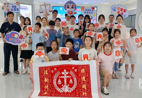 “法官教我怎么當小法官,我還學會了剪‘法’字剪紙!原來法律可以這么有趣!”9歲的小學生蔡以諾在陳士海老師和大學生志愿者的指導下,順利將“守法”二字剪了出來。