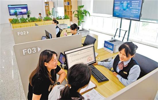 6月24日,安徽省淮南市政務(wù)服務(wù)大廳,企業(yè)代表在與工作人員交流。近年來,該市持續(xù)打造集約高效的政務(wù)服務(wù)體系,推進(jìn)跨層級、跨區(qū)域的信息共享和業(yè)務(wù)協(xié)同,讓群眾實(shí)現(xiàn)“高效辦成一件事”。陳彬 攝(中經(jīng)視覺)