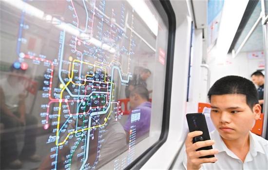 5月7日,重慶軌道交通1號線列車智慧車窗,乘客在透明OLED顯示屏上查看線路、前方到站、3D站臺、周邊景點(diǎn)等信息。重慶市已打造多個(gè)智慧車站,采用智慧安防、智能開關(guān)站、客流智能分析預(yù)測等技術(shù),為乘客帶來全新的出行體驗(yàn)。孫凱芳 攝(中經(jīng)視覺)