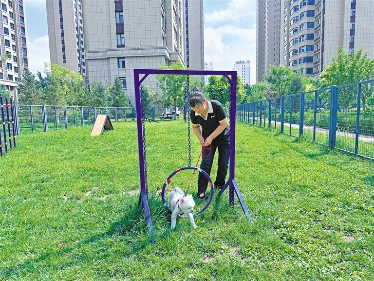 在占地近200平方米,設(shè)施齊全、環(huán)境整潔的寵物樂園,跨欄、鉆圈、平衡木、滑梯、蹺蹺板等游樂設(shè)施一應(yīng)俱全,還有專門的寵物飲水點、便池,給寵物提供了一個干凈舒適的玩耍環(huán)境,充分滿足了小區(qū)120多戶養(yǎng)犬業(yè)主的需求。