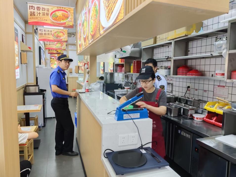 食安“加碼”,守護(hù)舌尖上的安心?!安惋嫷耆?xì)鈭?bào)警器是否正常運(yùn)行?油煙凈化器清洗的臺(tái)賬是否齊全?”聚焦開(kāi)學(xué)季師生就餐需求,執(zhí)法人員帶著“一店通查”清單,對(duì)高校周邊20余家餐飲店開(kāi)展“全覆蓋”檢查。檢查以燃?xì)獍踩珵楹诵?,?yán)格核對(duì)鋼瓶實(shí)名制信息,排查灶具、減壓閥隱患,確保燃?xì)鈭?bào)警器處于正常使用狀態(tài);同步嚴(yán)查跨門經(jīng)營(yíng)、垃圾分類混投等問(wèn)題,督促商戶落實(shí)“門前三包”責(zé)任,對(duì)兩家存在隱患的店鋪現(xiàn)場(chǎng)下達(dá)整改通知書,要求限期整改。