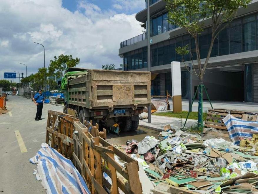 針對違規(guī)處置建筑垃圾行為,執(zhí)法人員開展定期巡查,強(qiáng)化運(yùn)輸監(jiān)管。7月,執(zhí)法人員巡查至鐵建·明賢府城市會客廳南側(cè)時(shí),發(fā)現(xiàn)一輛貨車正裝載著建筑垃圾行駛在道路上。因該型號貨車并不具備運(yùn)輸建筑垃圾的資格,執(zhí)法人員立即上前制止并引導(dǎo)司機(jī)至路邊詢問。經(jīng)詢問,貨車司機(jī)劉某某涉嫌個(gè)人違法從事建筑垃圾運(yùn)輸,該行為違反了《寧波市建筑垃圾管理?xiàng)l例》。