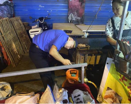 執(zhí)法人員來到港道路、中官路等夜市集中經(jīng)營點,建立“一攤一檔”安全臺賬,對使用燃氣的商戶進行全覆蓋檢查。過程中,執(zhí)法人員重點對夜市區(qū)域內(nèi)液化氣瓶是否具有年檢標(biāo)識、液壓閥的老舊程度、輸氣膠管的老化程度、滅火器是否合理配備和擺放等情況進行詳細檢查。
