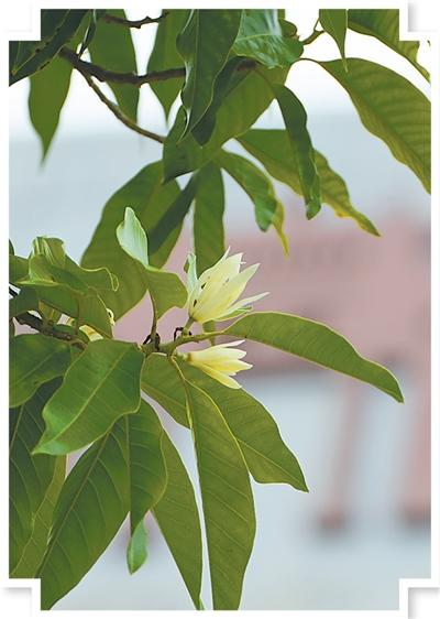 白蘭樹高大挺拔,花朵點(diǎn)綴其間。林煥平攝