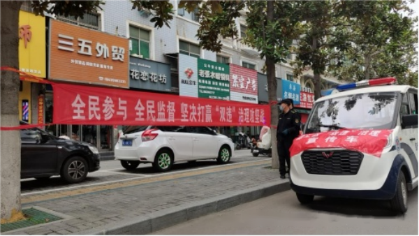 利用巡邏車、懸掛條幅開展多層次、多渠道、全方位宣傳“雙違”治理工作,加強正面宣傳引導(dǎo),形成強大輿論氛圍。同時通過走街串巷面對面開展政策解讀、法律宣傳、風險提示等,把政策法規(guī)向群眾講清楚、講明白,讓“雙違”治理工作入腦入心。