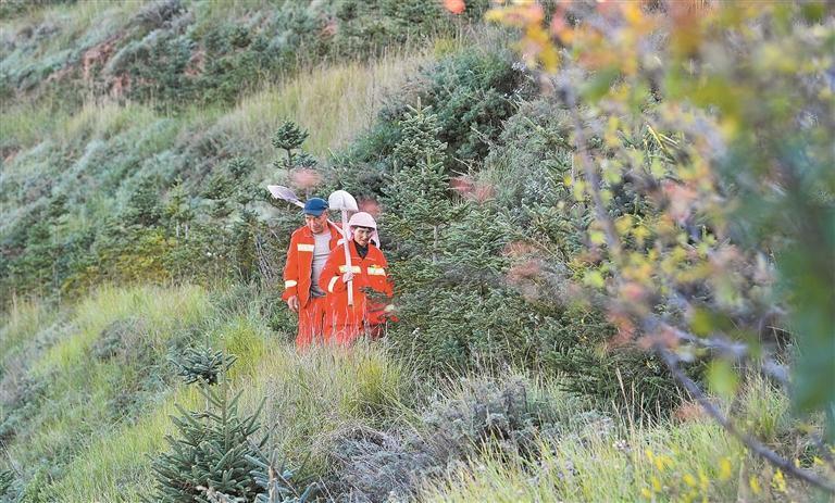 “以前哪能看到這么多植物?”西山林場尖哇嘴管護(hù)員魯生錄和老伴兒李四讓卓瑪扛著鐵鍬,沿著管護(hù)區(qū)的小道巡護(hù),望著遠(yuǎn)處連綿的山坡,眼里滿是回憶:“聽老一輩綠化人說,剛開始種樹的時候,山上盡是光禿禿的土坡,風(fēng)一吹就揚(yáng)沙,能活下來的只有幾棵耐旱的老楊樹。后來為了讓林子‘活’起來,大家想盡了辦法——從外地引種云杉、沙棘這些耐高原氣候的樹種,先在育苗區(qū)試種,觀察它們的長勢,再慢慢摸索不同樹種‘搭伴生長’的規(guī)律。你看現(xiàn)在,喬木能擋風(fēng)固土,灌木能涵養(yǎng)水分,各種鳥類都來這兒筑巢了?!?/p>