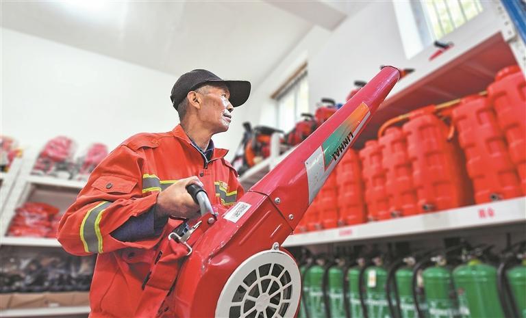 守護(hù)這片綠,防火是全年不能松的“弦”。園區(qū)的防火通道旁,紅色的滅火器箱沿路邊排放整齊。在森林防火物資儲備庫里,管護(hù)員趙金財一邊對設(shè)備進(jìn)行維護(hù),一邊說道:“林子密了,一點(diǎn)火星都可能出大事。一到干燥季節(jié),我們每天要繞著園區(qū)走好幾圈,見著游客抽煙就上前宣教,遇到枯枝落葉也及時清走。這些樹長了十幾年才這么粗,我們多上點(diǎn)心,才能守住這片綠?!?/p>
