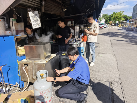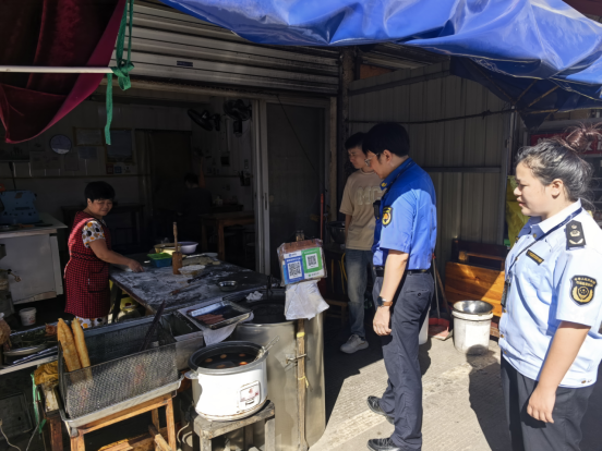 在整治過(guò)程中執(zhí)法人員對(duì)商鋪的燃?xì)馄康陌踩褂眠M(jìn)行詳細(xì)檢查,包括訂氣溯源,瓶口閥門(mén),氣密安全等。執(zhí)法人員提醒商戶規(guī)范擺放物品,告知商鋪經(jīng)營(yíng)線內(nèi)只能放置經(jīng)營(yíng)物品,其他雜物不允許擺放。同時(shí),對(duì)商家燃?xì)狻⒃罹叩陌踩褂?,餐飲環(huán)境衛(wèi)生、食品安全等進(jìn)行了全方位的細(xì)致檢查。為學(xué)生營(yíng)造一個(gè)健康、安全的飲食環(huán)境。