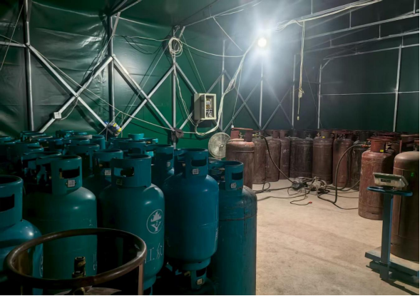 7月中旬,龍山鎮(zhèn)綜合行政執(zhí)法隊(duì)接到線索稱,該鎮(zhèn)金岙村附近深夜常有燃?xì)馄窟\(yùn)輸車往來。通過執(zhí)法隊(duì)與公安、基層網(wǎng)格隊(duì)伍的聯(lián)動(dòng)排查,最終在邱王村與金岙村交界的隱蔽處發(fā)現(xiàn)一個(gè)氣瓶倒灌窩點(diǎn)。現(xiàn)場堆放著275只大小規(guī)格不一的氣瓶,4套灌裝工具正灌裝著液化氣。