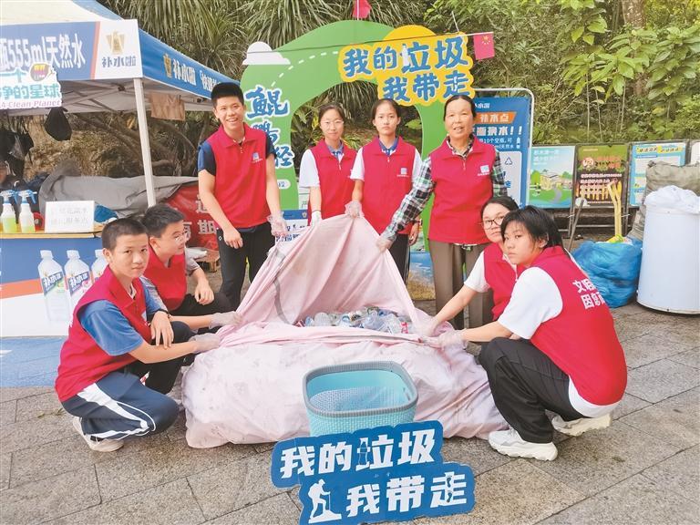 記者了解到,國慶中秋長假,深圳全市各區(qū)持續(xù)開展“山海撿塑 綠美鯤鵬”系列宣傳活動(dòng),在鯤鵬徑沿線登山出入口處設(shè)置了20余個(gè)志愿服務(wù)實(shí)踐點(diǎn)。身穿紅馬甲的志愿者駐守“山海撿塑”志愿服務(wù)實(shí)踐點(diǎn),為市民發(fā)放“我的垃圾我?guī)ё摺崩?,引?dǎo)市民參與“撿塑換享”“空瓶換水”等互動(dòng)活動(dòng)。據(jù)統(tǒng)計(jì),10月1日至8日,全市各區(qū)累計(jì)發(fā)動(dòng)超3萬人次參與活動(dòng),回收空瓶近10萬個(gè),兌換礦泉水及其他環(huán)保禮品超1萬份,以實(shí)際行動(dòng)踐行“我的垃圾我?guī)ё摺杯h(huán)保理念。