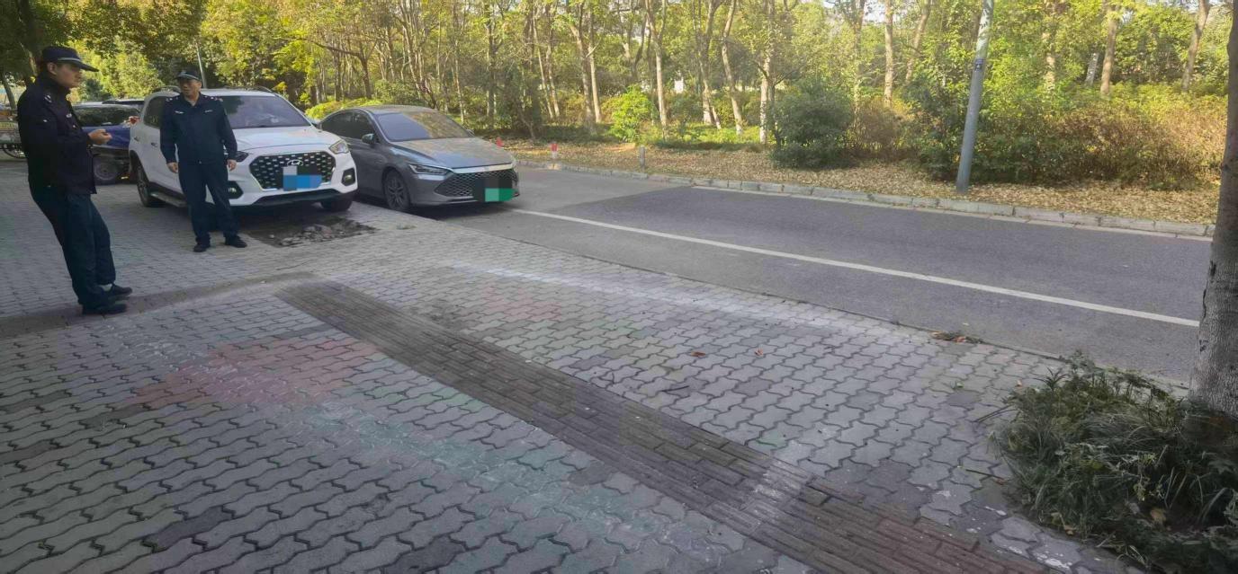 此前,執(zhí)法部門多次接到市民反饋,稱北侖區(qū)遼河路某小區(qū)人行道車輛亂?,F(xiàn)象突出,部分車輛不僅占用行人通行空間,更頻繁占壓盲道,導致行人出行受阻,尤其是特殊人群難以安全通過?!懊刻炻愤^這里都得小心翼翼,有時候車直接停在盲道上,盲人朋友根本沒法走,太危險了?!备浇用裢跸壬谕对V時無奈表示。