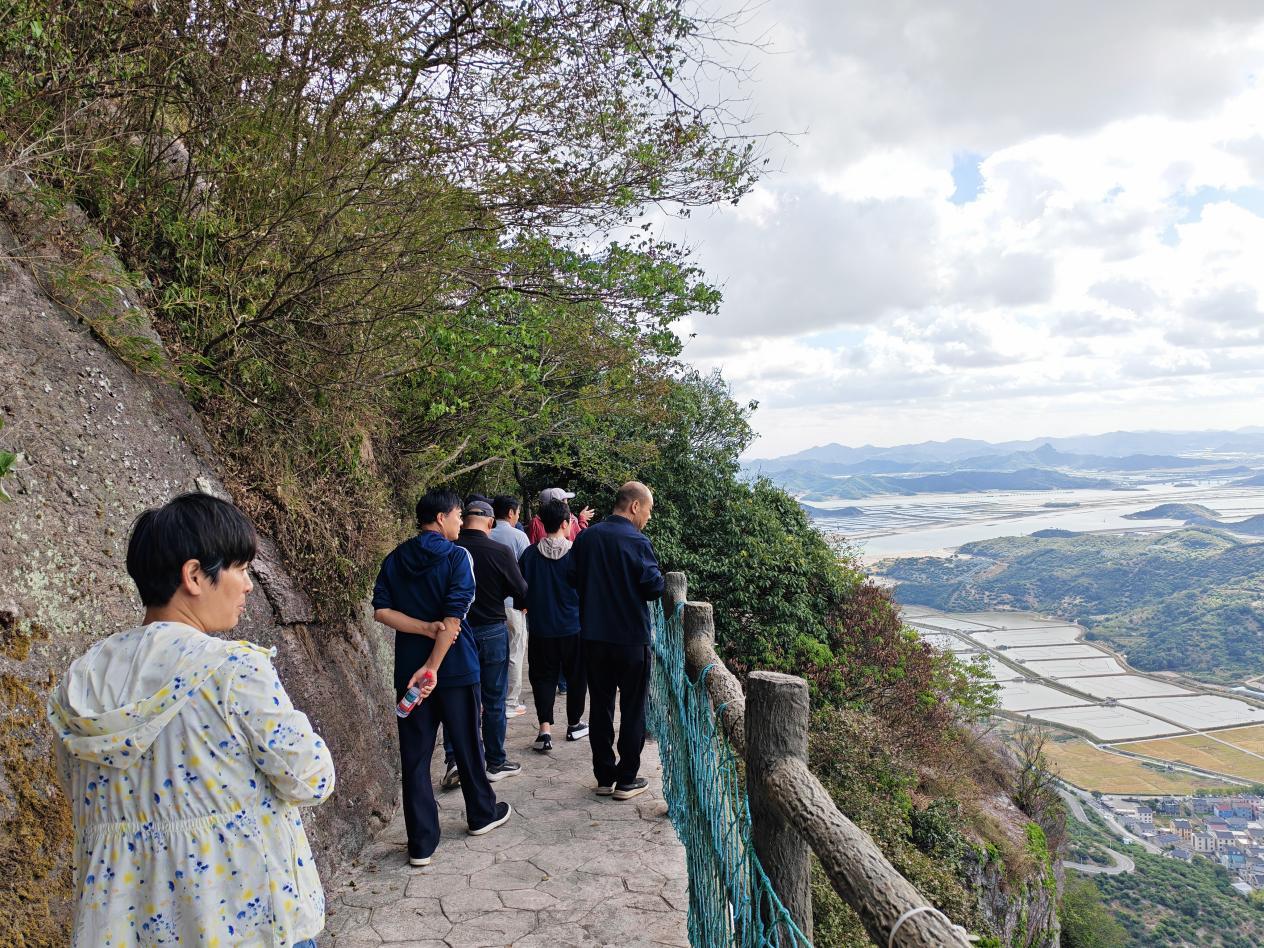 活動首站設(shè)在泗洲頭鎮(zhèn)靈巖山。老同志們精神抖擻,沿著步道緩步而上。大家邊走邊聊,暢談象山縣生態(tài)文明建設(shè)帶來的城鄉(xiāng)新變化。登頂遠眺,蟹鉗港的山海全景盡收眼底——碧海、灘涂、田園與村落交相輝映,構(gòu)成一幅動人的生態(tài)畫卷。老同志們紛紛拍照留念,感嘆家鄉(xiāng)綠色發(fā)展成果。退休干部老周激動地說:“這些年,縣里的生態(tài)建設(shè)成效顯著,讓我們倍感自豪?!?/p>