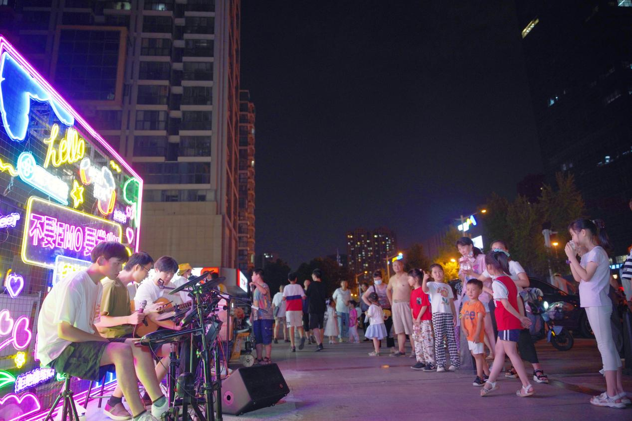 近日,夜幕降臨后的華潤蘇果天元東路店,顯得格外熱鬧。廣場上小吃攤位、后備箱攤位、套圈、扎氣球、歌手駐唱等項目吸引了不少消費者駐足?,F(xiàn)場售賣的章魚小丸子、辣炒年糕、水果撈、榴蓮、烤香腸、涼粉、涼皮、啤酒、鐵板魷魚、小龍蝦等各類美食,得到了不少“吃貨”的好評?,F(xiàn)場播放的露天動畫電影,更是深受小朋友們的喜愛。此外,該門店還邀請了知名樂隊來到現(xiàn)場駐唱,并在網(wǎng)絡(luò)平臺直播?!鞍l(fā)光夜市”濃濃的煙火氣息,引來不少直播觀眾打CALL。