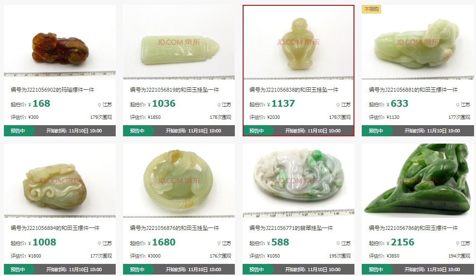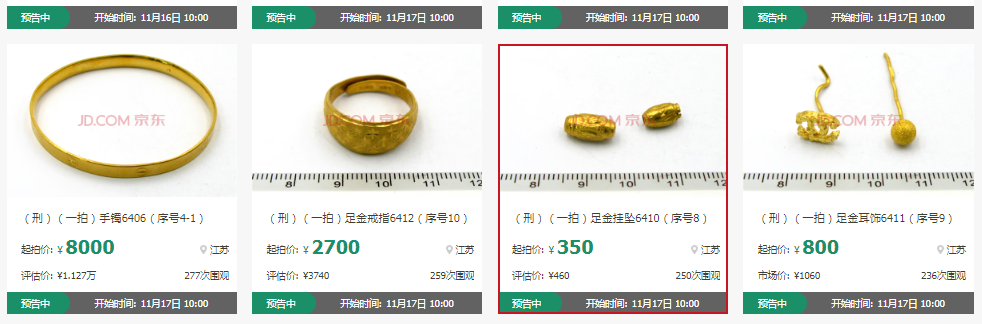 蘇州吳中法院和常熟法院在京東11.11期間上拍的一批金銀玉石,數(shù)量超過100件,包含精品和田玉手把件、手串、手鐲,翡翠掛件、手把件,金條、金項(xiàng)鏈、金手鐲等各類金銀玉石。品種繁多,性價(jià)比超高。
