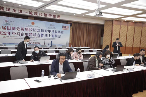 為進(jìn)一步豐富第五屆進(jìn)博會(huì)對(duì)接活動(dòng)主題,促進(jìn)中國(guó)和馬來(lái)西亞兩國(guó)間的經(jīng)貿(mào)投資往來(lái),中國(guó)銀行與中國(guó)駐馬來(lái)西亞大使館、馬來(lái)西亞中華總商會(huì)共同舉辦了“第五屆進(jìn)博會(huì)貿(mào)易投資對(duì)接會(huì)中馬專(zhuān)場(chǎng)暨2022年中馬企業(yè)跨境撮合線(xiàn)上對(duì)接會(huì)”(以下簡(jiǎn)稱(chēng)“中馬對(duì)接會(huì)”),邀請(qǐng)客戶(hù)依托“惠如愿·中銀e企贏”平臺(tái)開(kāi)展線(xiàn)上視頻洽談。江蘇中行積極落實(shí)總行工作部署,設(shè)立了南京、淮安兩處分會(huì)場(chǎng),邀約了近30家中小企業(yè)客戶(hù)參加“中馬對(duì)接會(huì)”。