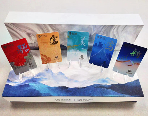 在外觀設(shè)計上,“強(qiáng)富美高新”硬錢包簡潔大方、主題突出,每套硬錢包由五張標(biāo)準(zhǔn)卡片式硬錢包組成,分別取名“強(qiáng)、富、美、高、新”,體現(xiàn)了新時代江蘇發(fā)展的總目標(biāo)定位。其中,“強(qiáng)”主題硬錢包采用中國風(fēng)設(shè)計,體現(xiàn)江蘇經(jīng)濟(jì)高質(zhì)量發(fā)展,氣勢如虹;“富”主題硬錢包采用南京云錦作為底紋,在花叢中呈現(xiàn)城市樣貌,體現(xiàn)人民群眾獲得感、幸福感、安全感不斷增強(qiáng);“美”主題硬錢包采用典雅的中國水彩風(fēng)設(shè)計,綠色潑墨漸變體現(xiàn)江蘇綠水青山的生態(tài)環(huán)境建設(shè)成果,融入了省會南京的玄武門、銀杏葉、吉祥飛鳥等元素,寓意江南魚米之鄉(xiāng)的秀美風(fēng)光;“高”主題硬錢包采用深藍(lán)色作為設(shè)計主色,鋼筆的筆尖與文化和文明相呼應(yīng),體現(xiàn)江蘇的社會文化程度高;“新”主題硬錢包采用新中式風(fēng)格,以江南建筑輪廓融入更多現(xiàn)代的審美,寓意堅持把科技創(chuàng)新作為經(jīng)濟(jì)社會發(fā)展的第一動力。