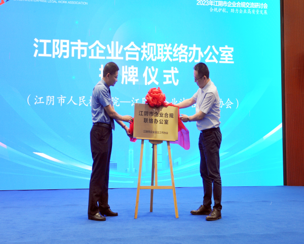 會(huì)上,江陰市人民檢察院四級(jí)高級(jí)檢察官陳衛(wèi)東、江陰市企業(yè)法治工作協(xié)會(huì)會(huì)長蔡磊共同為“江陰市企業(yè)合規(guī)聯(lián)絡(luò)辦公室”揭牌。隨后,陳衛(wèi)東介紹了江陰市人民檢察院開展企業(yè)合規(guī)工作的總體情況,包括檢察環(huán)節(jié)合規(guī)的定位、相關(guān)經(jīng)驗(yàn)做法以及取得的主要成效。