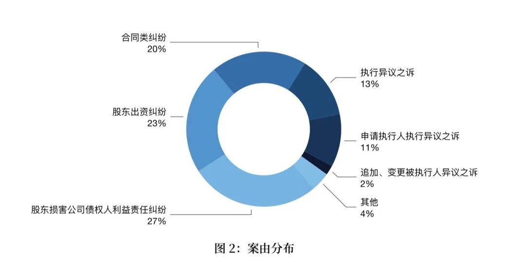 從案由可見(jiàn),股東損害公司債權(quán)人利益責(zé)任糾紛、股東出資糾紛在涉股東出資責(zé)任案件中較為多見(jiàn),合計(jì)占比50%。因2016年8月《最高人民法院關(guān)于民事執(zhí)行中變更、追加當(dāng)事人若干問(wèn)題的規(guī)定》(2020年12月修訂)《九民紀(jì)要》等規(guī)范性文件先后發(fā)布,近四年公司債權(quán)人起訴請(qǐng)求出資屆期或尚未屆期的股東對(duì)公司不能清償?shù)膫鶆?wù)承擔(dān)補(bǔ)充賠償責(zé)任的情況日益增多,由此引發(fā)的與股東出資責(zé)任有關(guān)的執(zhí)行類異議之訴數(shù)量居高不下,在涉股東出資責(zé)任案件中合計(jì)占比26%。