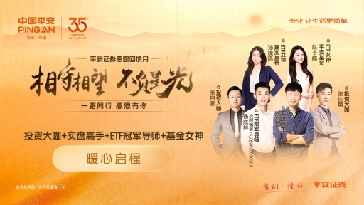 據(jù)悉,在中國平安成立35周年之際,為了以專業(yè)、有溫度的金融產(chǎn)品及服務(wù)持續(xù)感恩回饋2200萬客戶,平安證券啟動"感恩回饋月"活動,在為期一個月的活動期間,平安證券APP推出"Pick平安好投顧""實盤英雄傳""ETF粉絲回饋""最佳功能評選"等主題活動,并落地年度盛典直播活動,邀請業(yè)界大咖及資深用戶深入交流,暢聊投資理念,探尋正確的投資之道,為用戶帶來"省心、省時、又省錢"的金融服務(wù)體驗。
