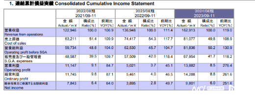 根據(jù)無印良品母公司良品計劃發(fā)布2024財年第一季度財報,在2023年9月至11月期間,良品計劃營收同比增長19%至1629億日元,經(jīng)營溢利同比增長176.4%至138億日元。