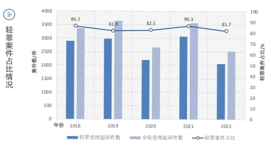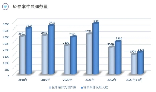 2018年1月至2023年8月,海淀區(qū)檢察院共受理審查起訴輕罪案件14713件18165人,案件數和人數分別占全院受理審查起訴案件總數的82%、77%。