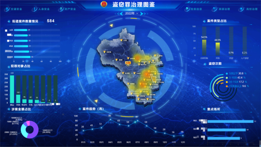 在該界面可以查看各街鎮(zhèn)盜竊罪案件數量情況、案件類型情況、案件趨勢、涉案金額情況、盜竊次數情況、犯罪對象情況及該類案件高發(fā)重點場所等。