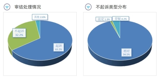 輕罪案件社會危害性較小、罪責輕,犯罪嫌疑人認罪悔過可能性較大。檢察機關在辦理輕罪案件過程中,更加注重貫徹寬嚴相濟刑事政策精神,全面落實認罪認罰從寬制度,輕罪案件處理趨于寬緩。從認罪認罰從寬制度適用情況看,2018年以來,輕罪案件認罪認罰從寬制度的適用率達 97.4%;從輕罪案件的審結處理情況來看,2018年至2023年8月,經審查作出起訴決定的11852人,起訴率為65.2%;作出不起訴決定5848人,不起訴率為32.2%,其中94.5%為相對不起訴。