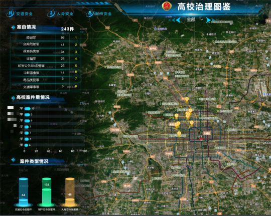 在該界面可以查看涉高校案件案由分布情況、各高校案件數量情況、涉案人員身份情況等。