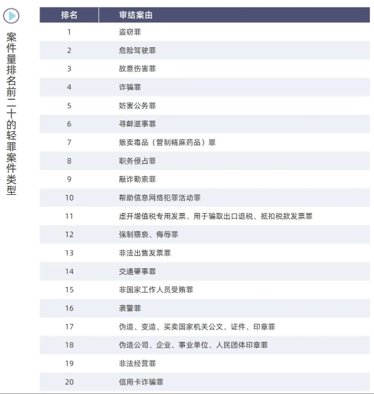 輕罪案件涉案罪名廣泛,涵蓋刑法各個章節(jié),其中以侵犯財產安全、危害交通安全、人身安全以及妨害社會管理秩序類案件居多。近年來,隨著輕罪案件數量的不斷增長,輕罪案件類型化趨勢日益明顯。結合海淀區(qū)檢察院研發(fā)的“輕罪治理圖鑒”監(jiān)督模型[2],具體分析如下: