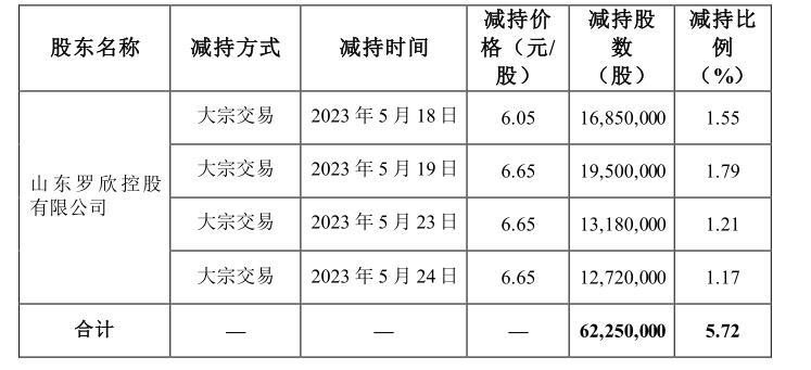 根據(jù)羅欣藥業(yè)彼時披露的《簡式權(quán)益變動報告書》,在上述期間,羅欣控股通過證券交易系統(tǒng)以大宗交易方式減持6225萬股,共套現(xiàn)約4.04億元。