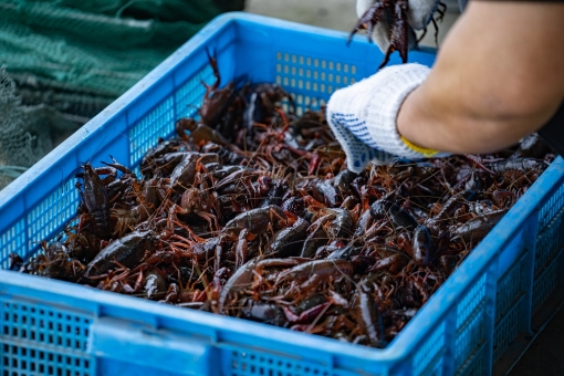 在君璐軒稻麥種植家庭農(nóng)場的一片藕田上,養(yǎng)殖工人正在打撈小龍蝦,“藕田中的水草、浮游生物等是小龍蝦的天然飼料,同時小龍蝦的排泄物為蓮藕成長提供有機養(yǎng)分,非常綠色、健康?!本窜幍钧湻N植家庭農(nóng)場的負責人介紹說,養(yǎng)殖小龍蝦不是件容易事,從種苗、下苗、投喂到捕撈等諸多環(huán)節(jié),每個環(huán)節(jié)的把控都要非常精準,才能最大程度上降低損耗,保證小龍蝦的鮮活,“在龍蝦的喂養(yǎng)上,我們使用的是蛋白含量40%以上的小龍蝦專用飼料,有效保證小龍蝦吃的更有營養(yǎng),肉質(zhì)更Q彈鮮美。”